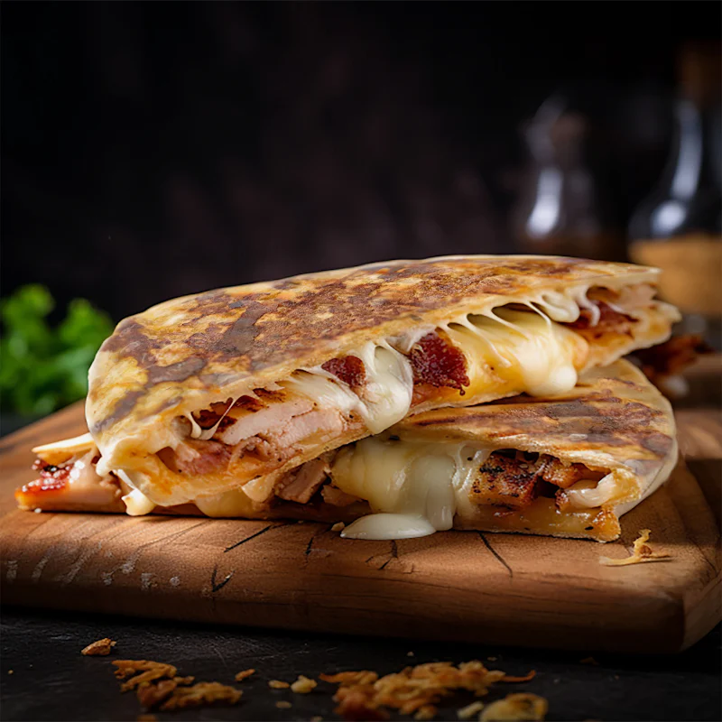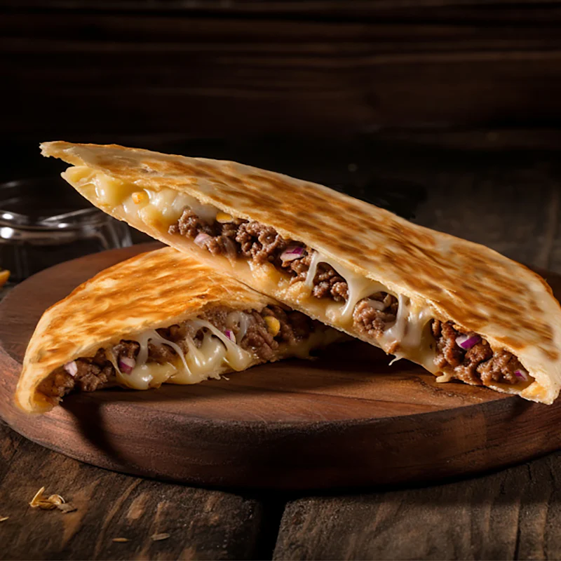 Mozzarella and cheddar cheese melted in a pita seared in avocado oil with your choice to add meat, toppings or both!