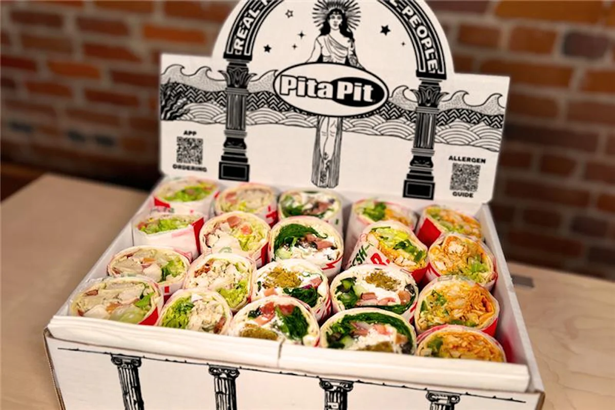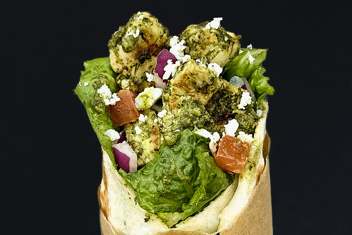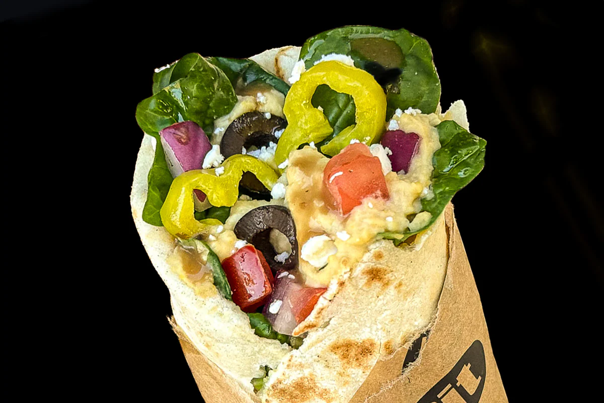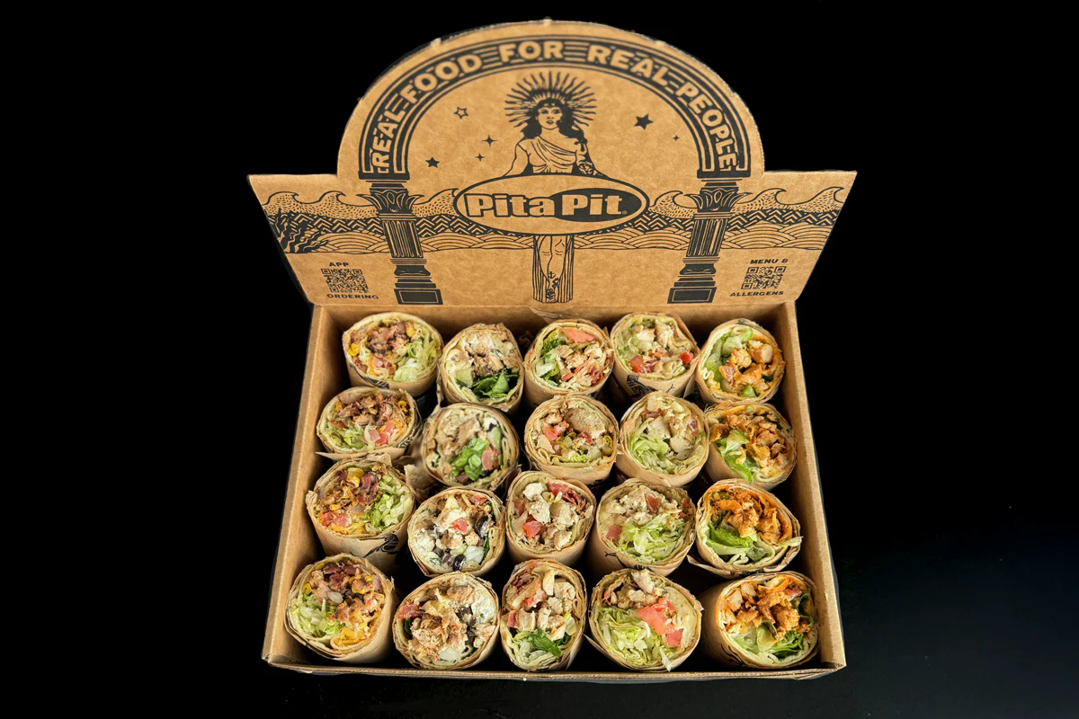 Pita sandwich Lunch Boxes include a sandwich, chips and a cookie. Salad and Brown Rice Quinoa Lunch Boxes include a salad OR Brown Rice Quinoa Bowl, pita wedges and a cookie. Vampire Killer Spiceology seasoned chicken grilled in buffalo sauce, romaine lettuce, green peppers, cheddar cheese and ranch dressing.