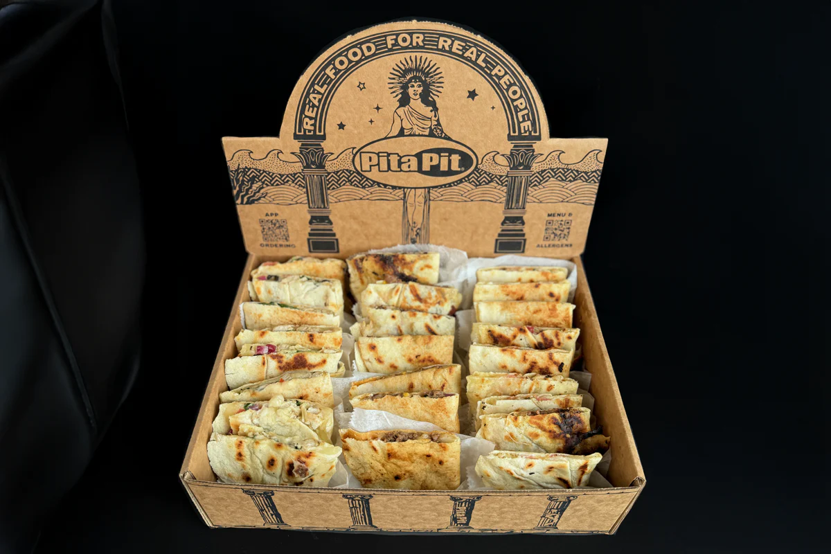 An assortment of 24 halves of our Greek Grilled Cheese!
