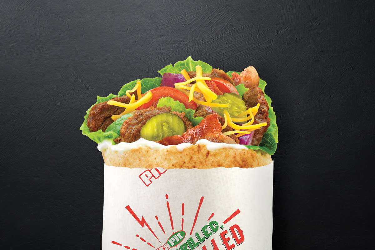 Pita sandwich Lunch Boxes include a sandwich, chips and a cookie. Salad and Brown Rice Quinoa Lunch Boxes include a salad OR Brown Rice Quinoa Bowl, pita wedges and a cookie. Seasoned steak, grilled onions, grilled green peppers, grilled mushrooms, shredded lettuce, mozzarella and ancho chipotle dressing.